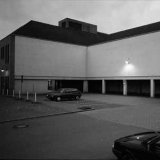 Den Löbberts fiel nämlich eine einsam in der Mitte der längeren Wand hängende Leuchte auf, die in der Dämmerung und des Nachts den Parkplatz erhellt. Indem die Künstler ganz einfach über beide Wände in rhythmischer Abfolge und Ordnung 19 zusätzliche Lampen des gleichen Fabrikats verteilten und elektrisch anschlossen (8 auf der kurzen, 11 auf der längeren Mauer), schufen sie eine eindrucksvolle Lichtinstallation auf der Basis simpler Multiplizierung eines bereits am Ort existierenden Ausgangsobjekts. Alle 20 Wandleuchten – und wer weiß, welche von ihnen die ursprüngliche ist? – werden zur Dämmerungszeit gleichzeitig mit der Pulheimer Straßenbeleuchtung eingeschaltet. Sie beleuchten nicht nur heller als bisher die Platzsituation, sondern sie erzeugen im wahrsten Sinne des Wortes, wie es Maik und Dirk Löbbert in ihrer Projektkonzeption voraussahen, auf den Wänden „ein außergewöhnliches Lichtbild“. Und wahrhaftig, die von mehreren Pfeilern getragenen Brandmauern gleichen quasi architektonisch gestützten Bildflächen. Schon tagsüber werden sie plastisch von den metallisch dunklen Leuchtkörpern rhythmisch strukturiert. Jedoch erst bei Dunkelheit, die im Herbst früh einsetzt, zaubern die eingeschalteten Lampen eine immaterielle Lichtmalerei auf die Wände. Es ist eine Lichtzeichnung, eine „Fotografie“ ganz besonderer Art. Im Dunkeln treten die Lampenkörper in ihrer profanen Gestalt zurück und das ihnen entspringende Licht allein entfaltet seine faszinierende Ästhetik. Beginnend mit der zwielichtigen Dämmerung steigert sich seine 80 Watt pro Lampe messende Leuchtkraft proportional im Kontrast zur stetig zunehmenden Dunkelheit der einbrechenden Nacht. Dabei spielt sich ein stimmungsmäßig poetischer Dialog zwischen dem erblassenden Tageslicht und der zunehmenden Leuchtintensität der 20 Wandlampen ab, die mit kaltblauem Magentalicht 20 Lichtkegel über die Wände verteilen.