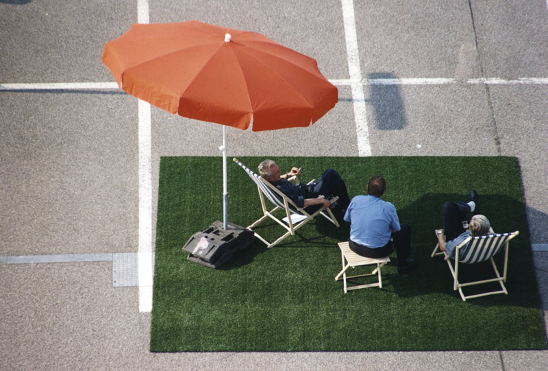 20 Freizeitmodule (je ein Kunstrasen, 4 x 4 m, zwei Liegestühle, ein Sonnenschirm, ein Klapptisch) stehen den Besuchern zum Sonnen, Entspannen und Verweilen zur Verfügung. Während der Öffnungszeiten ist ein Bademeister anwesend. Die Parkebenen 1-4 werden wie üblich als Parkplatz für Pendler genutzt.