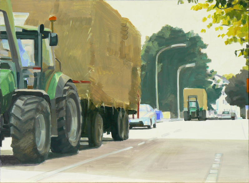 Eine Tankstelle hinter dem Stoppelfeld, Turmspringer im Schwimmbad und der Traktor auf der Hauptverkehrsstraße: Von der Pulheimer Kulturabteilung zur Reihe der Kunstprojekte „Stadtbild. Intervention“ eingeladen, erforschten Antje Schiffers und Thomas Sprenger während eines einmonatigen Aufenthalts den Pulheimer Alltag im Spätsommer und machten ein Buch mit Titel „im August“ daraus. Zeichnungen, Ölbilder, Fotos, kurze Texte - ist das ein Kinderbuch? Ist das ein Kunstbuch? Das Logistikzentrum, der Buchhandel, die Langeweile, die Ernte und das Leben der Fasane – „Mit dem Gedanken an ein Kinderbuch darf man so herrlich ungeniert die Welt erklären“, sagen die Künstler.