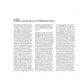 Wie diese »Interventionen« bekannter zeitgenössischer Künstler jeweils in die Sozial- und Kommunikationsräume der städtischen Gesellschaft eingreifen, ist spannend dokumentiert. Als Installationen oder performanceartige, spielerische Aktionen nutzen sie »öffentlichen Raum als Raum des kollektiven Bewusstseins«, mitunter auch provozierend. Damit fördern sie nicht zuletzt den lebendigen Diskurs über Stadtgestaltung.